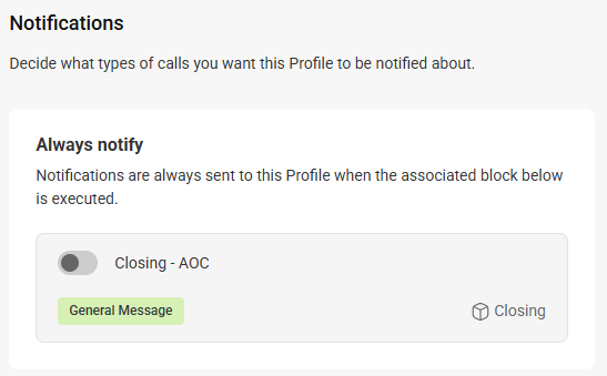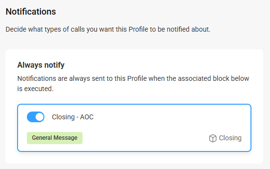 - Notifications: What types of call outcomes you want this Profile to receive notifications about