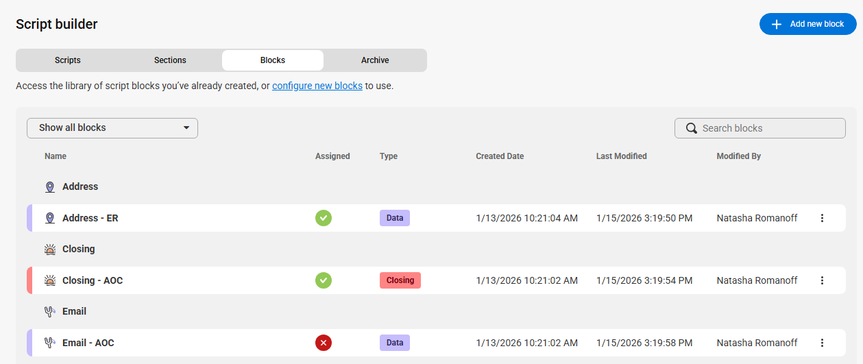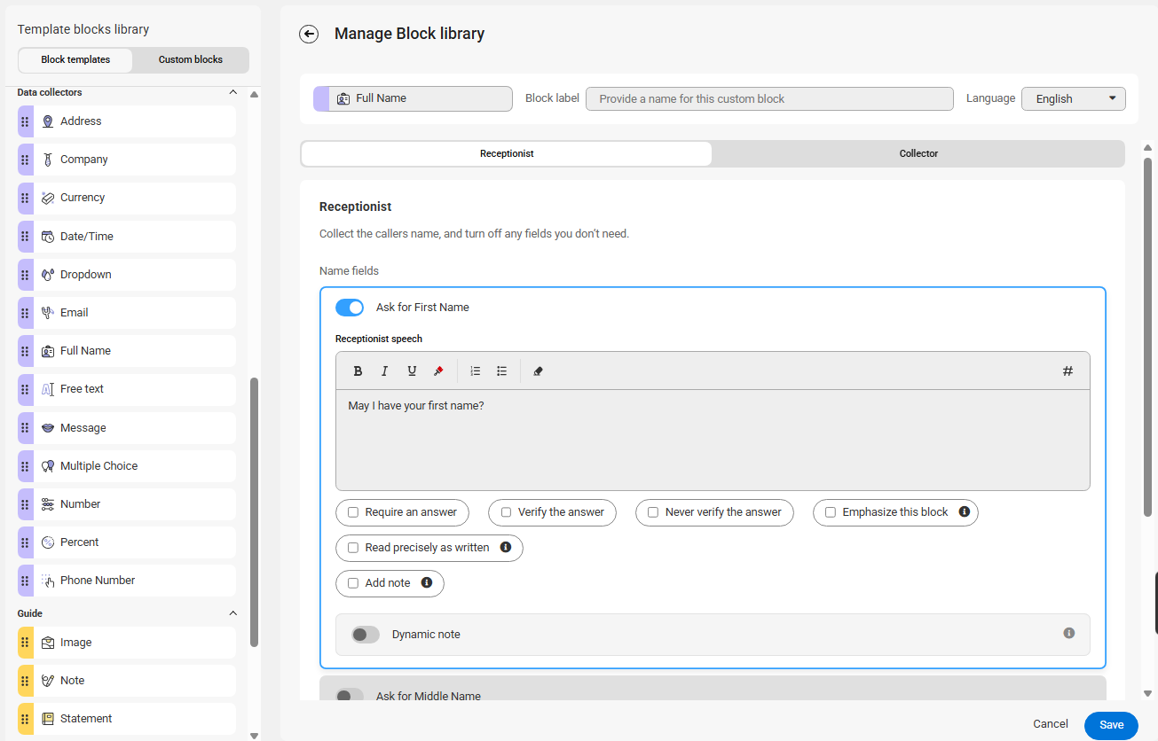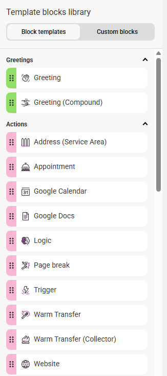 Script blocks can also function behind-the-scenes within your script and may not necessarily gather any information from your callers. For example, Workflow (Date Time) is a script block that can automatically change your script depending on the time and/or date. This script block is most commonly used to create temporary holiday call handling.
