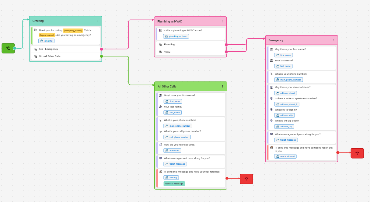 You can set up your workflow with as many sections as you need. But keep in mind that the more sections you have, the more time it will take the operators to decide which route to take. That may result in mishandled calls and longer call length. As a rule of thumb, we suggest having no more than 5 sections within your script to help keep customer interactions streamlined.