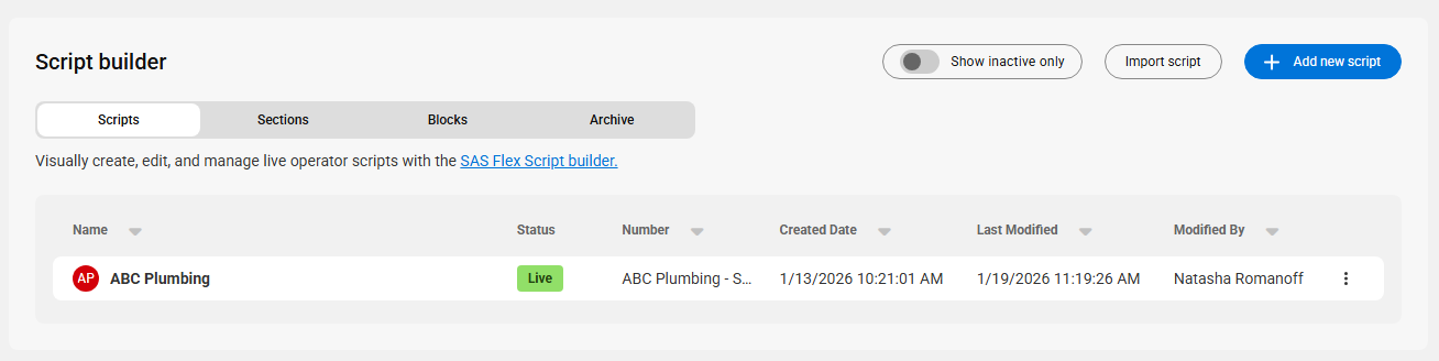 A script is what our CSRs use to handle your calls according to your specific business needs, and the Call Script Builder is the system we use to build or create your script. The Call Script Builder has several components, which we will look at below.