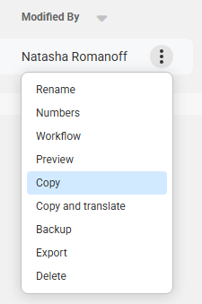 If you'd like to make updates to your script but don't feel comfortable just yet, we encourage you to make a Copy of your script, then add the updates you want implemented in the copy first. Simply select Copy from the same 3-dot menu icon mentioned above. Once you're satisfied with the updates made to your script copy, you can push it live by re-assigning the number from the live script to the copy.