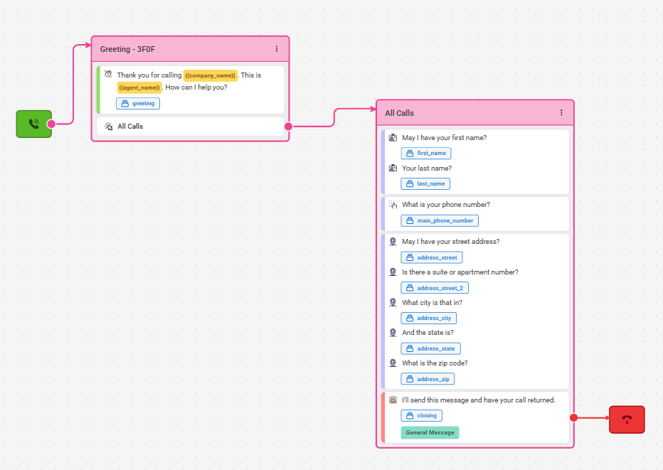 Adding a logic option in the middle of a path can send agents in different directions depending on how the caller responds to the question. For example, an HVAC company may have Greeting logic that asks if the caller is looking for Sales or Service. If Service is selected, they may have a secondary logic block to screen for Heating or Air Conditioning issues. Logic options can be as simple or as complex as you need them to be.