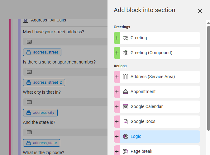 Adding a Logic Block to a Section