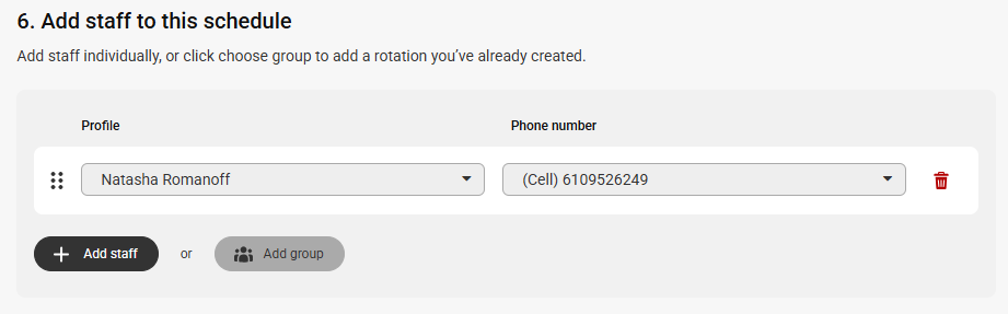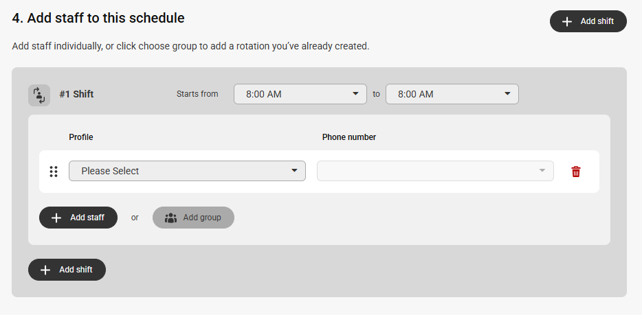 After choosing your Schedule Type, we can begin adding staff members. You can either choose a Group that you've already created, or you can manually add in your staff members via their Profiles.