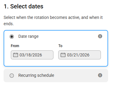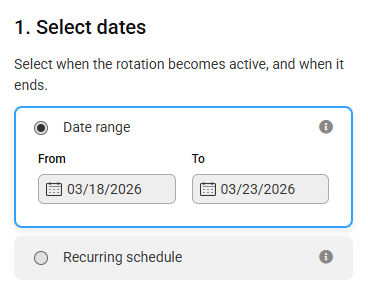 Just below this bar, you'll see some different tools to schedule your rotation, including the Date Range and Recurring Schedule. In this tutorial we will use the Date Range, but check out this article for more information on selecting dates.