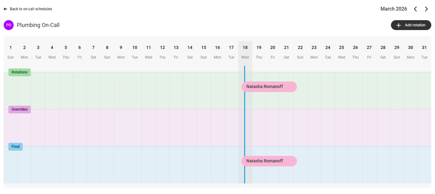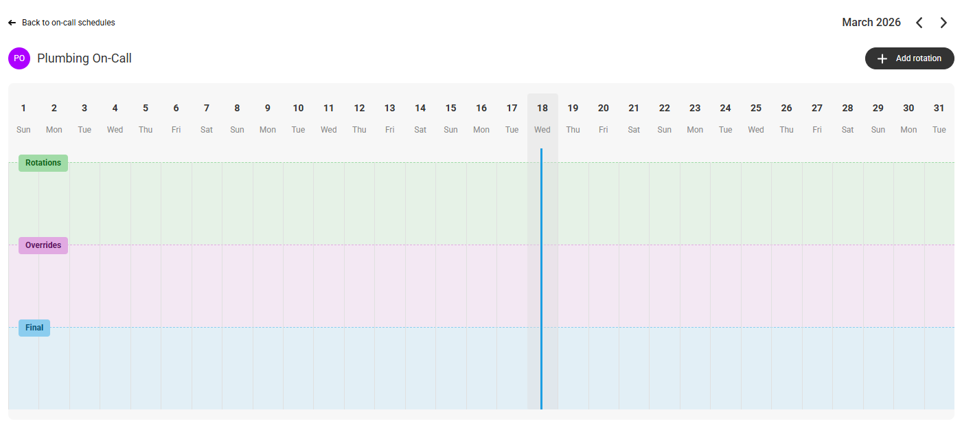 To add data to your on-call schedule, select Add rotation on the right-hand side of your screen.