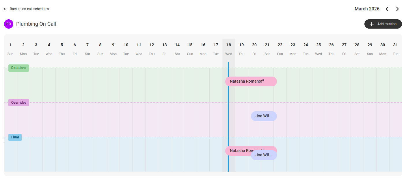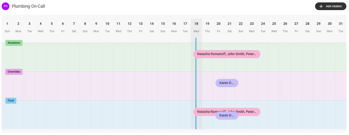 - Final: This is your final schedule, comprising the data from both your standard Rotation and Override schedules.