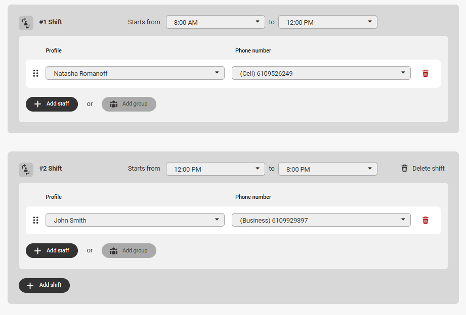 If your schedule is expired, the system will automatically dial the phone number listed in your Company Settings.