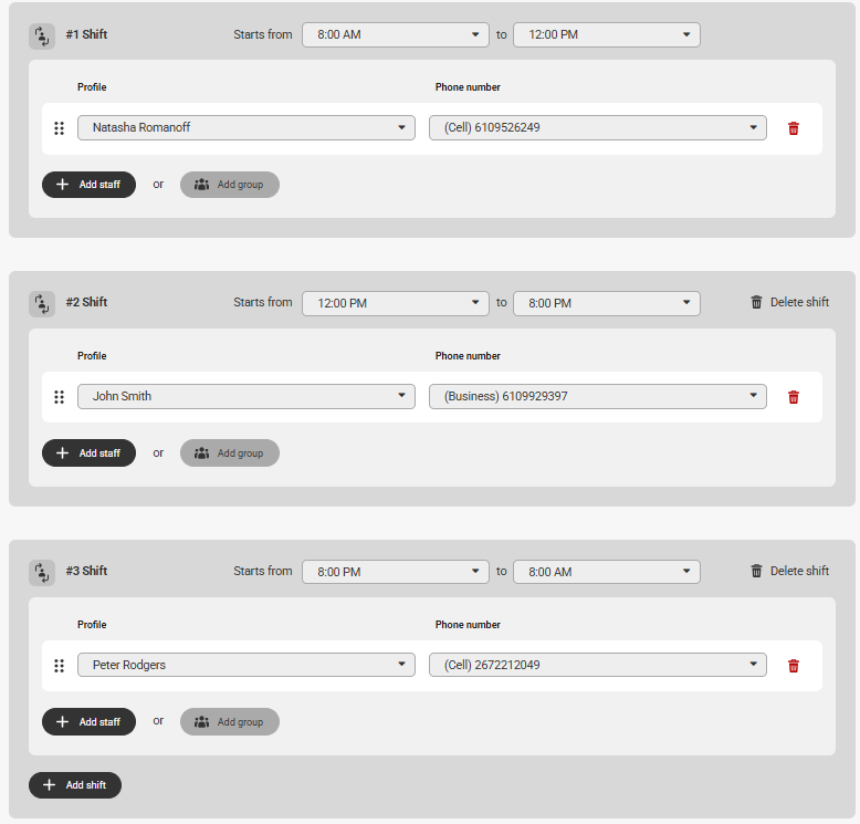 Continue adding your shifts until you've completed a full 24-hour rotation.