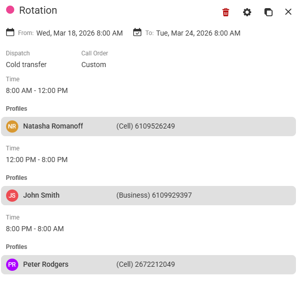 To view the specific time slots of your schedule, click on the rotation to see the overview as shown below