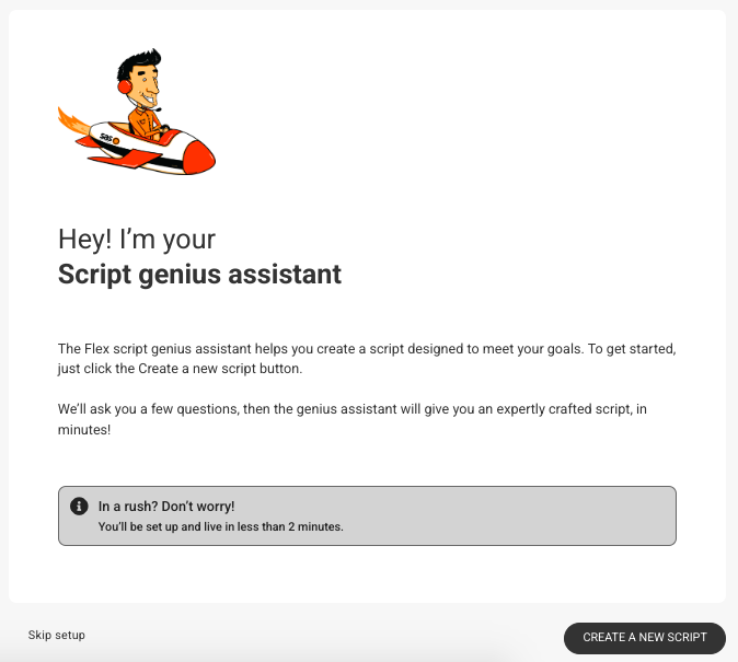 Once you select Build it for me, a pop-up will appear on your page. Click Create a New Script to get started.