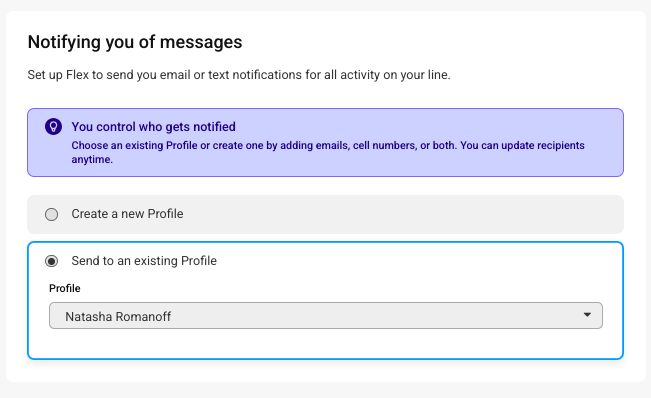 On the next screen, tell the system where to send messages by selecting a Profile. You can either create a new Profile from this screen, or you can select one that's already been created. When you are ready to move on, click Next.