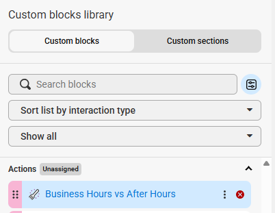 Next locate and drag over the the sections you want to follow the BH/AH section. In our example, we'll drag out our After Hours and Business Hours sections, placing them near the BH vs. AH section.