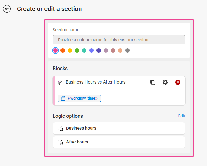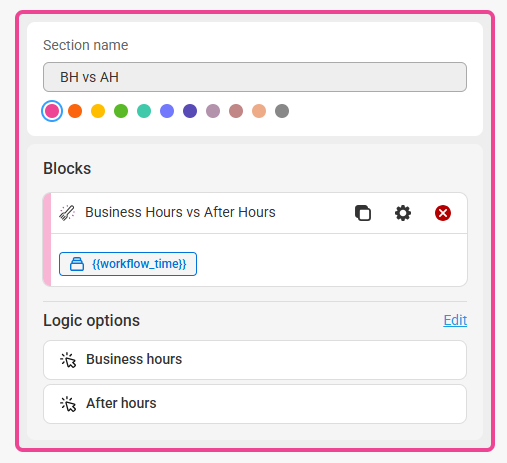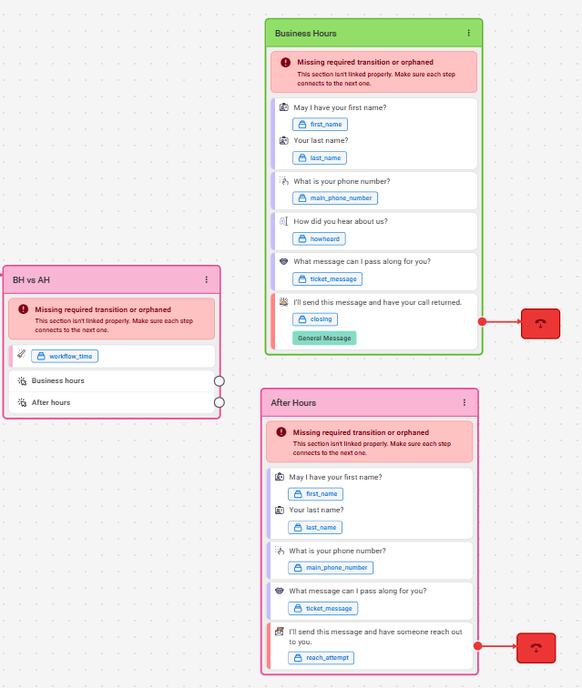 Link the Business Hours and After Hours sections to the BH vs. AH section, as shown below: