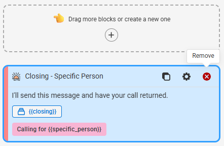 Once all your Closing blocks are created, you'll need to add them to their own respective Sections, just like you did for the Warm Transfer (Collector) block.