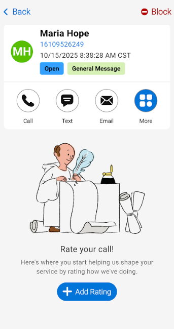 To rate a call after you've listened to it, tap the Rating button within the More option of the Details tab.