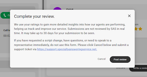 Call ratings allow you to let us know how the operators handled your call with a few clicks. We use this information to fine tune your answering service experience and maximize our efficiency and value to your business.