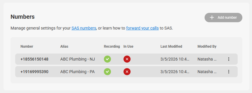 Before we get started, you'll want to make sure your SAS Numbers are named accordingly. This will help you identify them more easily. In our example, we'll be using the DNIS variable to determine which location the customer is calling from.