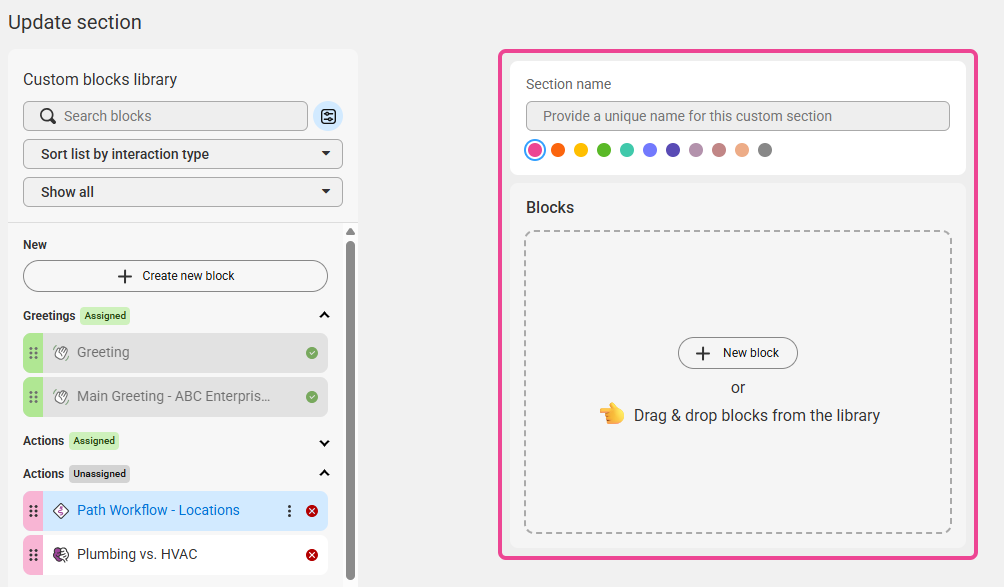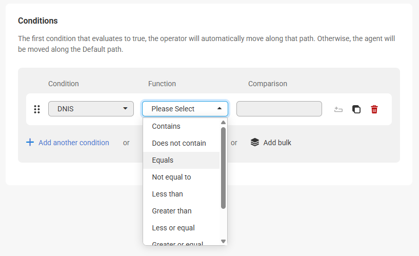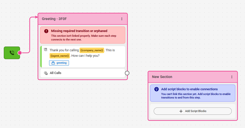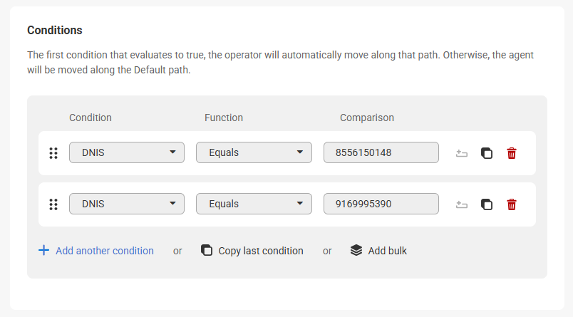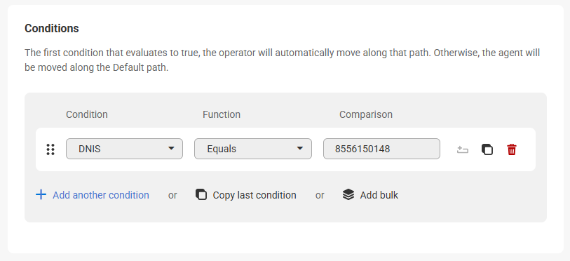 In order to route calls based on the DNIS, we'll need to configure a Workflow (Path) block. This will allow the script to route one way or another based on the specific SAS number that hit the system.