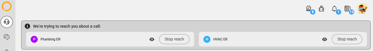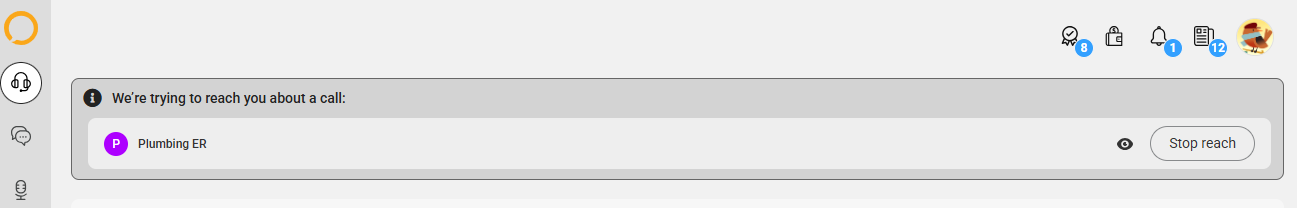If you have more than one Reach happening at the same time, you'll see both attempts along the top of your screen. Clicking on the Eye icon will bring up the actual call.
