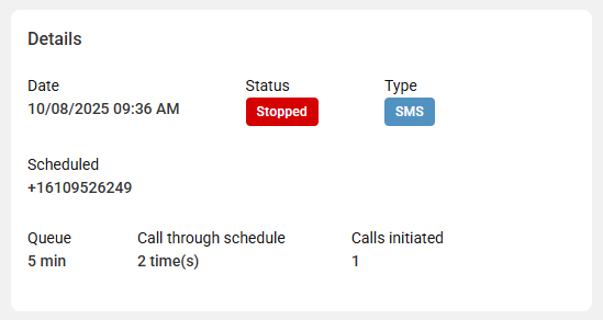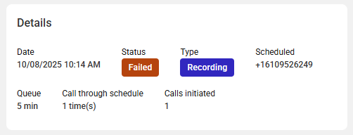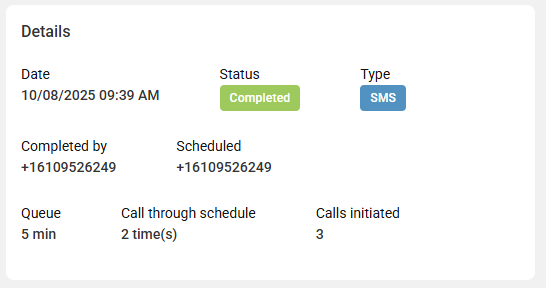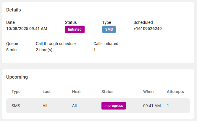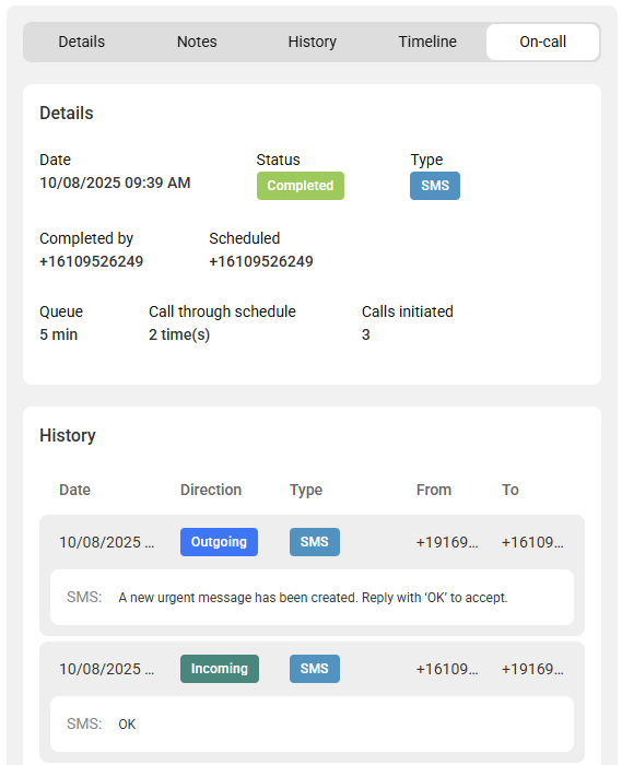 Within the details page of the call, the On-Call tab will show the details and status of the Reach, including any upcoming attempts.