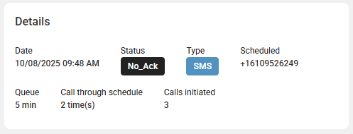 If you are utilizing an SMS reach, the status may say No_Ack instead, which stands for Not Acknowledged. This means that no one accepted the Reach.