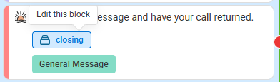 Locate and click on the script block you would like to switch out for another. In our example, we'll be swapping our Closing block for a Reach block, so we'll click on our Closing block to edit.