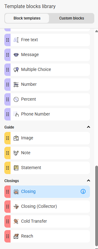 When building a script in SAS Flex, there are several options to choose from when deciding how to close out your script. In this article we'll show you how to configure a Closing script block.