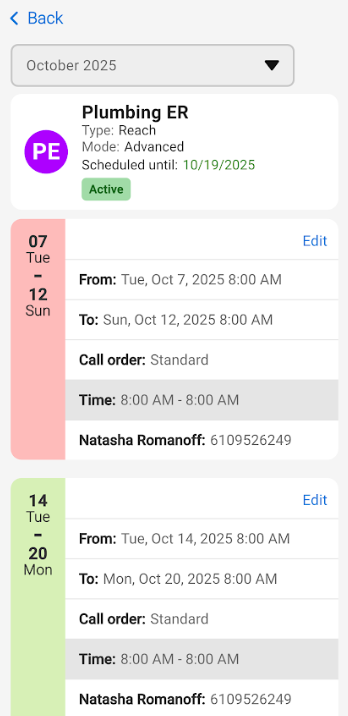 To view or edit the details of an on-call schedule, tap the specific schedule. To view on-call details for a different month, tap the filter along the top of the screen and select the applicable month you wish to view.