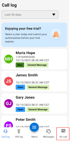 Within your SAS Flex Mobile App, tap the On-Call icon along the bottom menu of your screen.