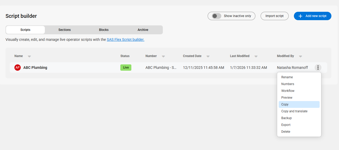 Whether you want to make updates to your current script, or you want to add an additional line to handle calls for a new business venture, a separate department or location, our Copy Script feature is a great tool to use to make adding or editing scripts super easy.