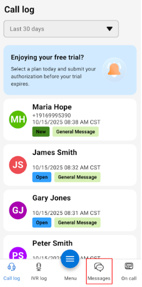 Note that if you send a text through the Call Details page instead of the Messages page, texts will come from your personal number.
