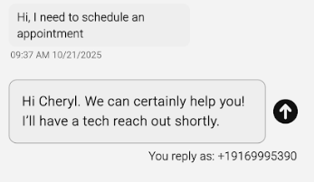 Communicating with your customers via text is easy with the SAS Flex mobile app. Texts sent from the app will come from your SAS forwarding number, so your personal number can remain private.
