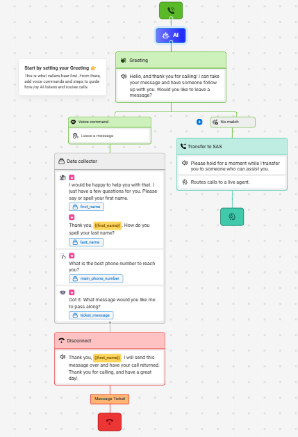 - Transfer to SAS: If this option is chosen, callers will be transferred to a live agent.