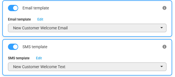 If you are utilizing the SAS Email App, the SAS SMS App, or one of our available App Integrations, toggle the appropriate option, then choose your respective template and/or configuration from the drop down.