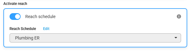 If you want the call to result in a Reach out to your on-call staff, use the Reach schedule toggle and select the applicable Reach schedule from the drop down.